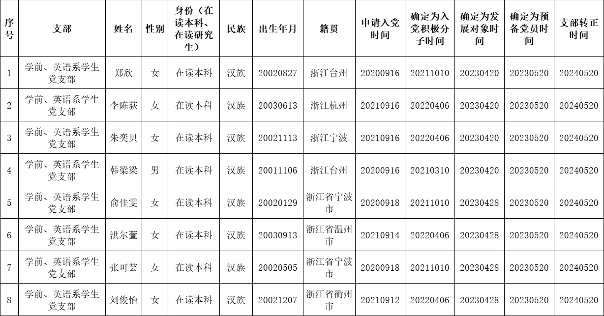 根据《中国共产党发展党员工作细则》中发展党员的文件要求,经对郑欣等48名同志的预备党员转正条件、转正程序等进行严格审查。2024年5月28日,学院党委会集体审议讨论了郑欣等48名同志的转正问题。党委委员共7名,实到会7名。经逐个审议和表决,7名党委委员一致认为郑欣等48名同志已具备正式党员条件,同意批准按期转为中共正式党员,党龄从预备期满转为正式党员算起。具体名单公布如下: