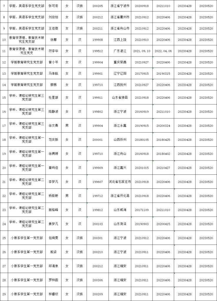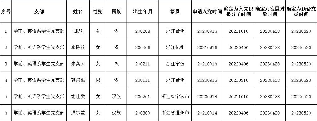 根据《中国共产党发展党员工作细则》中发展党员的文件要求,经对郑欣等49名同志的接收为中国预备党员条件、接收程序等进行严格审查。2023年5月30日,学院党委会集体审议讨论了郑欣等49名同志的接收问题。党委委员共7名,实到会7名。经逐个审议和表决,7名党委委员一致认为郑欣等49名同志已具备预备党员条件,同意批准接收为中共预备党员,预备期为2023年5月20日至2024年5月19日。具体名单公布如下: