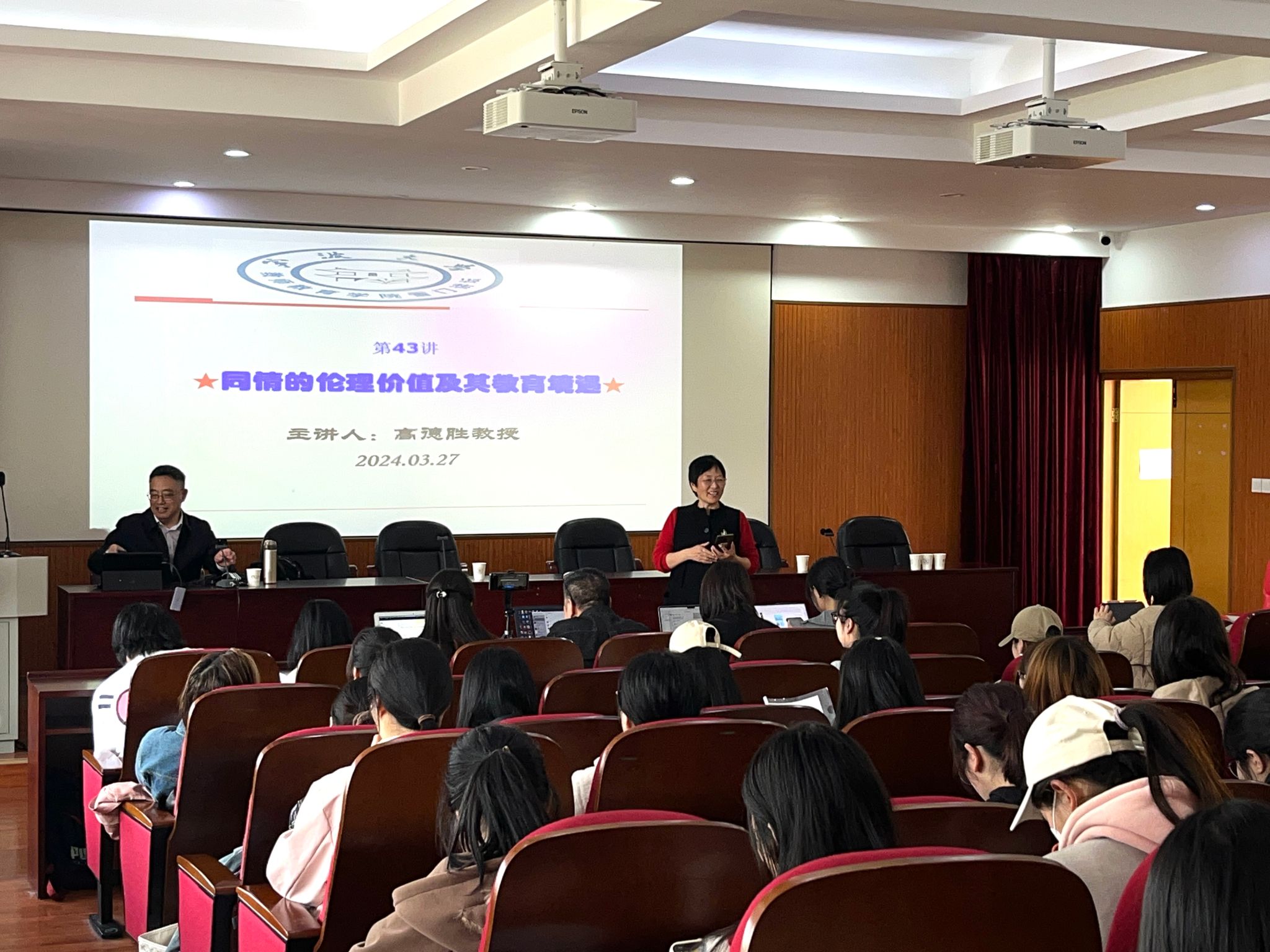 本次讲座高德胜教授主要从导论、“同情的本质与构成”、“仁慈:事前同情”、“同情的伦理价值”、“同情在当代教育中的处境”、结论这六个部分展开讲述。