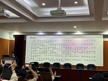 在讲座结束后,黄教授和学生们进行了互动讨论,解答了同学们的问题。黄教授在这次演讲中分享的内容非常详实丰富,主题引人深思,给参加的教师和同学留下了深刻的印象,并从中受益匪浅。陶志琼教授最后总结:要有儿童情怀,要有教育情怀,心中要有儿童,教师如果只有单独的热爱儿童之情是不够的,需要理论的力量来支撑。理解儿童的表征不仅要从认知维度,更要从社会维度。因为儿童也是社会人,教师需要从多维视角理解儿童,看见儿童成长的痕迹,顺势助力儿童的发展,这或许是给儿童一份珍贵的礼物。