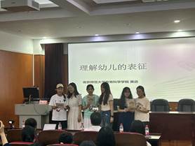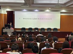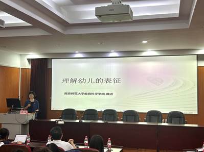 讲座伊始,在林兰老师的主持下通过《上春山》这首歌曲再次表示了对黄进教授到来的热烈欢迎。本次讲座黄进教授主要从热点话题、“我们如何知道这个世界是真实的”、“解析表征”、“理解儿童的表征”、“表征在幼儿园教育实践中的运用”这五个部分展开讲述。