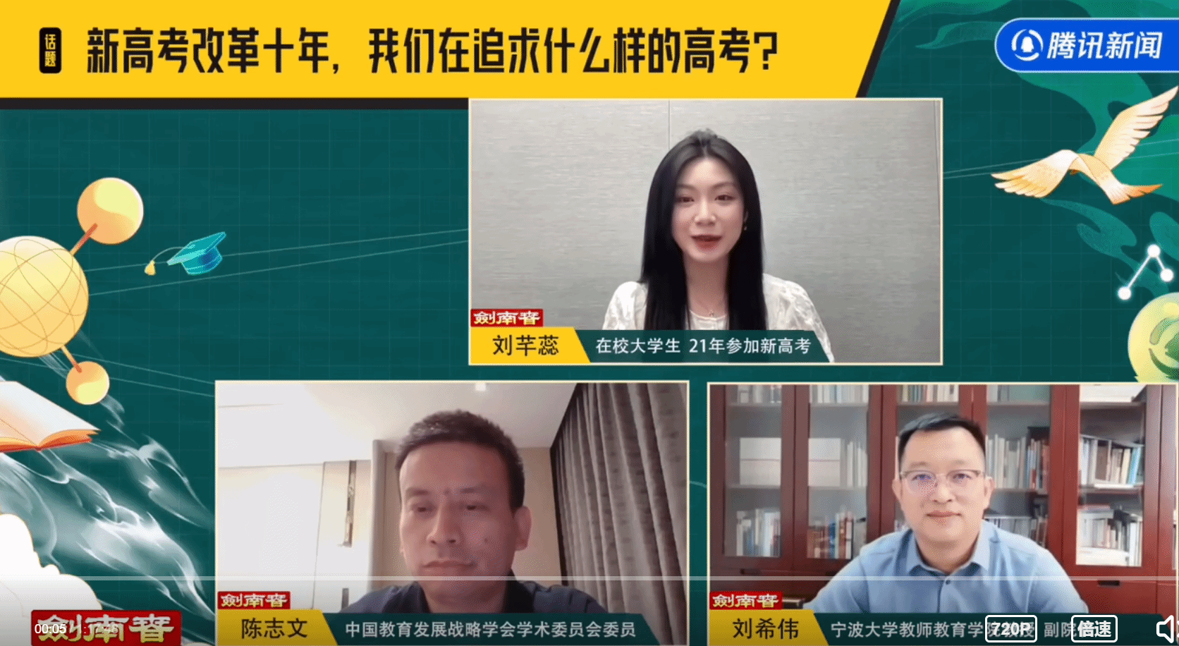 副院长、党委委员刘希伟教授,应邀与中国教育在线陈志文总编做客腾讯教育《人生AB面》节目,共同接受了“新高考改革十年”话题的采访。