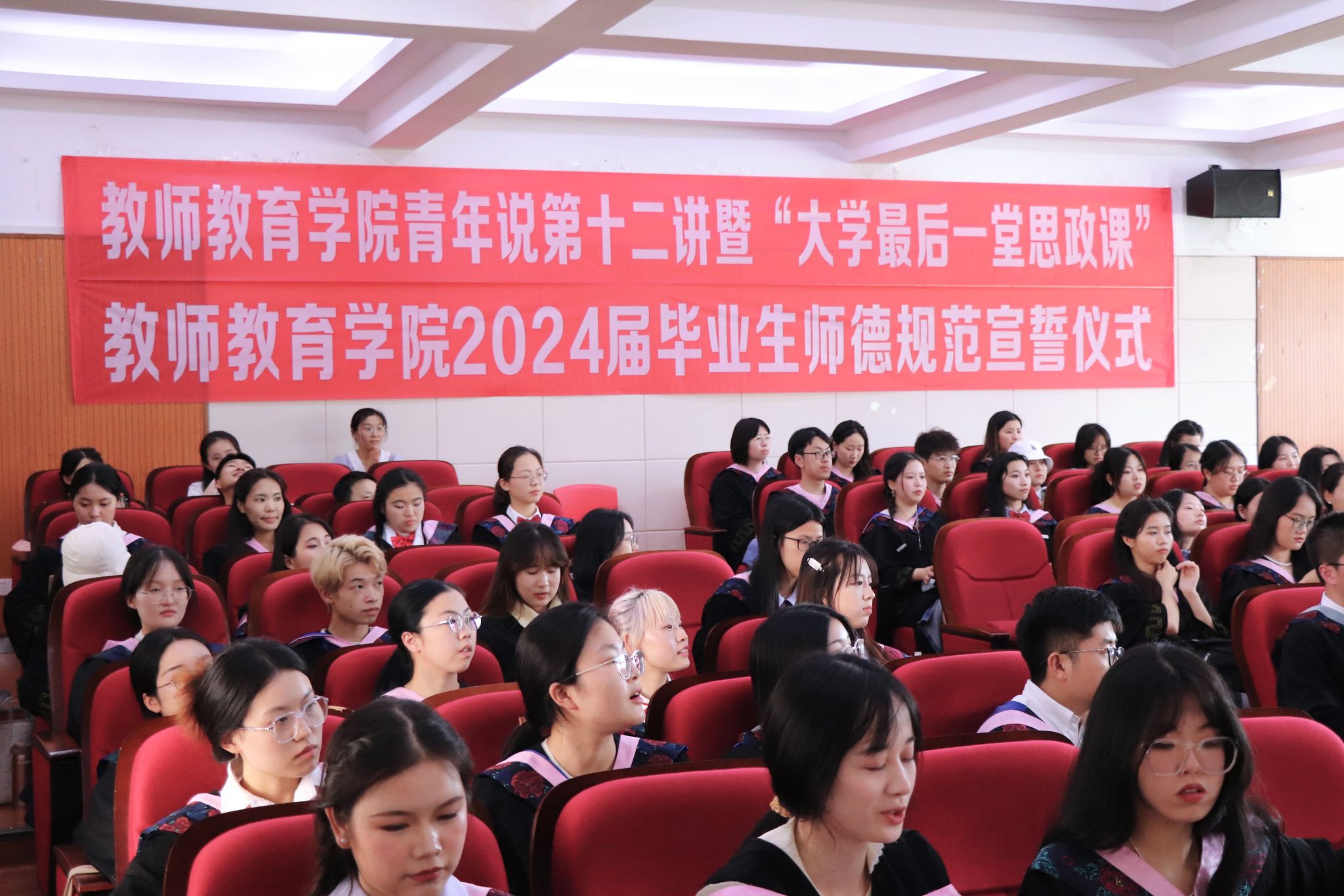 “最后一堂思政课”在西区教育楼211开讲,为110名即将步入教育领域的优秀毕业生助梦启航。