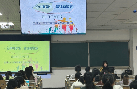 本次讲座特邀宁波高新区实验学校的陈楠老师主讲,陈楠老师有丰富的教育经验与深刻的教育洞见。本次受邀为小学教育专业本科生开展主题为“心中有学生,管理有智慧” 的讲座。