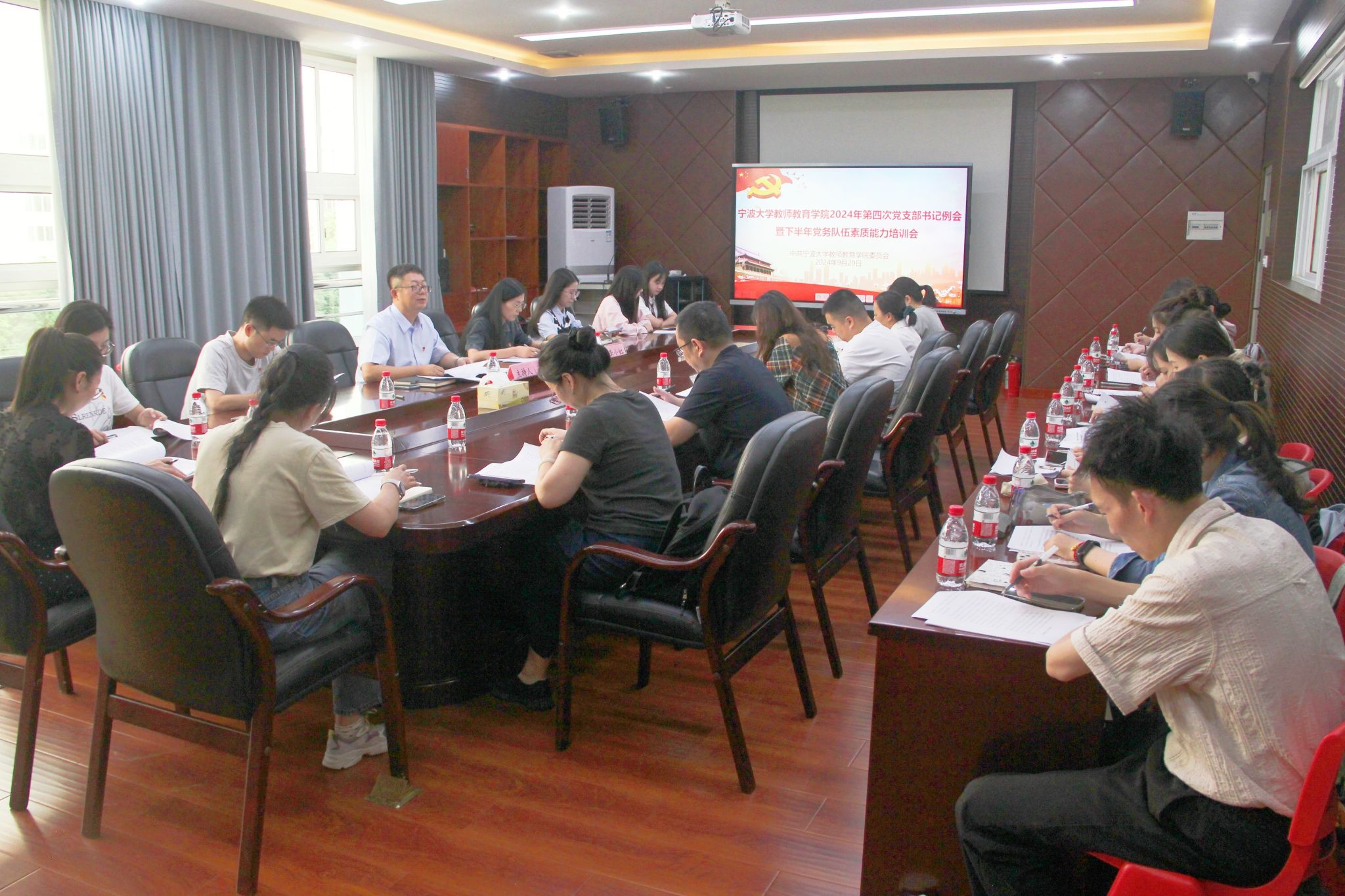 党委召开2024年第4次党支部书记例会暨党务队伍素质能力培训会。学院党委书记张林,学院党委副书记、纪委书记龚小虹,学院学生党建辅导员、组织员以及学院各师生党支部书记等参加会议。