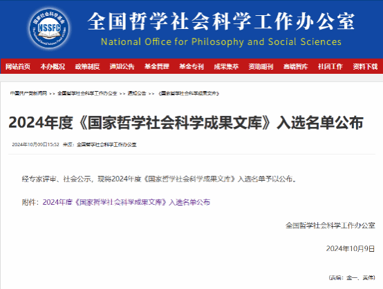 2024年10月9日,全国哲学社会科学工作办公室公布了2024年度《国家哲学社会科学成果文库》入选名单,成人论坛