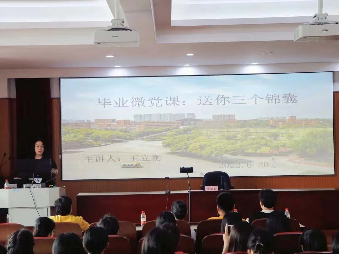 学院党委负责人为各位毕业生党员讲授最后一堂在校党课——“立德树人,做一名新时代好教师”。她结合学院的专业特点和办学特色,提出成人论坛