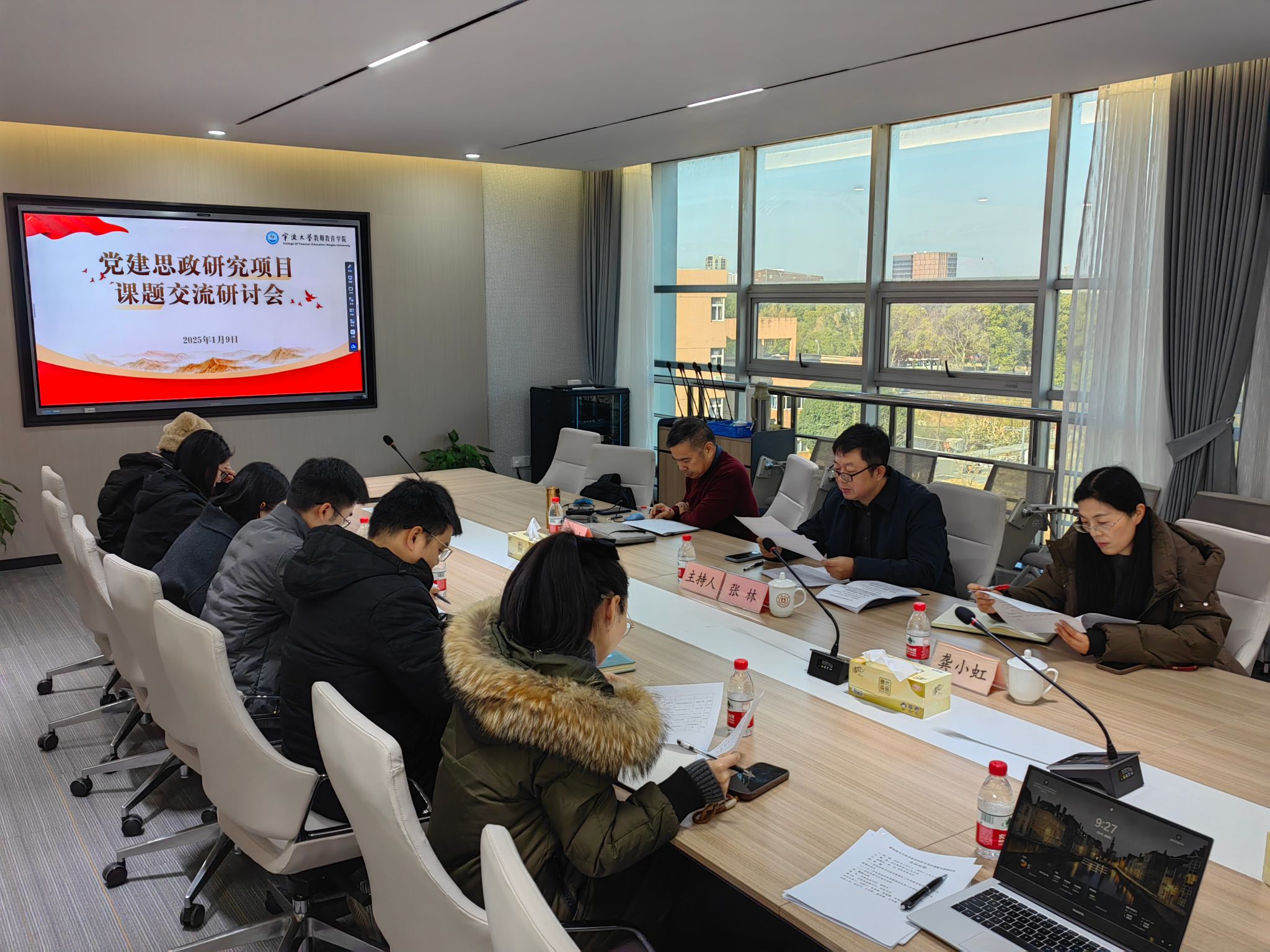 党委召开党建思政研究项目课题交流研讨会,特别邀请了获批教育部哲学社会科学重大攻关项目《高校思政课教师语言表达能力提升研究》的冯铁山教授进行专题经验交流与分享。会议由学院党委书记张林教授主持,党委副书记、纪委书记龚小虹,辅导员等相关思政、党务工作者参加了此次研讨会。