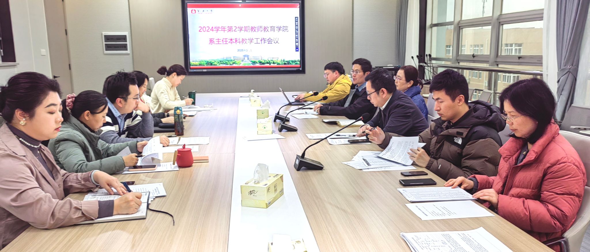 尹军副院长首先通报了上学期学院在课程建设、教研成果、推免工作等方面的本科教学进展情况,并对各系主任在过去一学期中的辛勤付出和取得的成绩给予了高度评价。同时尹军副院长对新学期的本科教学工作进行了详细部署,并提出了以下具体要求:各专业应高度重视教学成果奖的申报工作,力争在教育教学领域取得更多突破性成果;强调国家一流专业建设应与人工智能(AI)深度融合,推动课程体系与教学模式的创新改革;继续以高质量就业和考研为导向,为学生提供更全面的支持与指导。学科专业的优化调整需紧密结合经济社会发展的实际需求,确保人才培养与社会需求相匹配。李慧仙副院长对小学教育和学前教育专业在师范认证中期材料上传工作中的高效表现给予了充分肯定,并对后续师范认证中期材料的完善工作提出了具体要求,强调要确保材料的规范性和完整性。各系主任分别汇报了本学期专业建设的发展思路,并就各专业在建设过程中遇到的实际困难进行了深入探讨。与会人员积极建言献策,为解决问题提供了切实可行的方案。