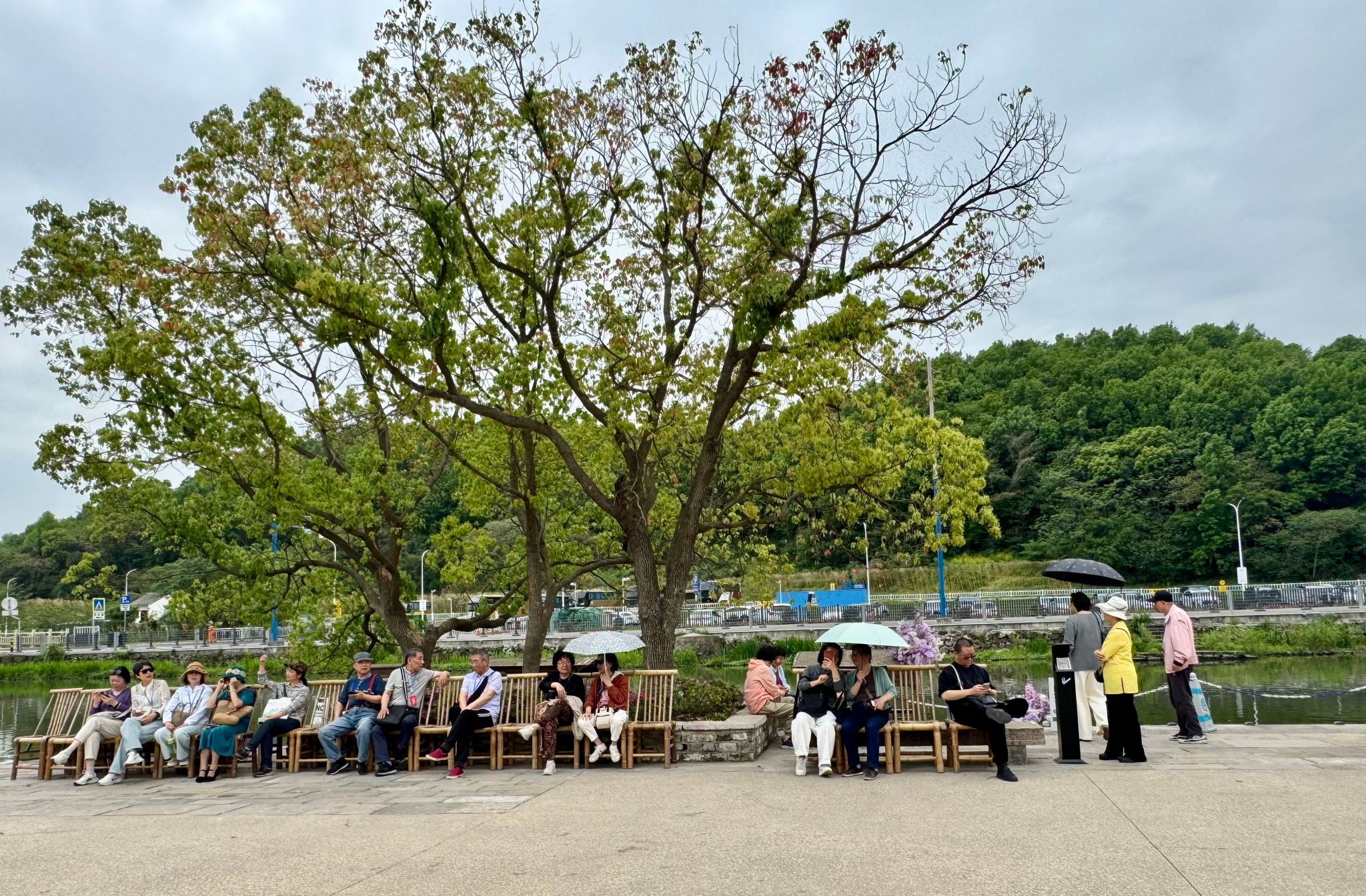 当天上午,老师们一行来到东钱湖畔的建设村。建设村地处陶公山麓、东钱湖畔,风光秀丽,是宁波地区极具代表性的江南水乡渔村之一。近年来,建设村依托“院士之家”等高端平台资源,大力推进乡村振兴建设,村庄面貌发生了翻天覆地的变化,展现了新时代农村治理和融合发展的新成果。大家漫步于湖畔古道之间,亲身感受美丽乡村建设带来的生态与人文双重提升。