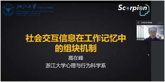 承办的心理学前沿学术论坛在腾讯会议线上举行。本次论坛第四期讲座以“社会交互信息在工作记忆种的组块机制”为题,由浙江大学心理与行为科学系教授、博士生导师高在峰主讲,成人论坛