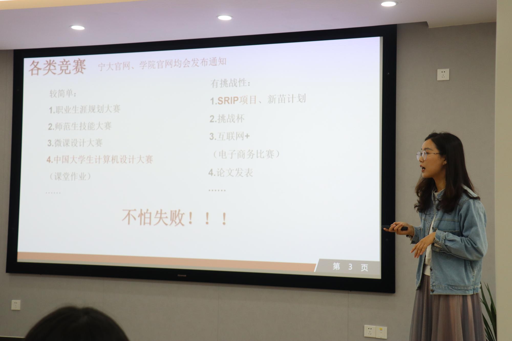 首先向我们分享的是徐文倩学姐,徐文倩学姐向同学们介绍了自己的学生工作经历,在谈到学习方面时,她讲述了自己参与各类竞赛的过程,鼓励同学们积极参加各种活动和竞赛,不要害怕失败。接着,她分享了在贵州省晴隆县第六小学支教有意思的经历,并简单解读了研支团推免条件。随后,徐文倩学姐劝勉同学们做好时间管理与规划,充实本科学习生涯。第二位分享的是张烨敏学姐。张烨敏学姐特别强调了学生干部经历的重要性,她曾任成人论坛