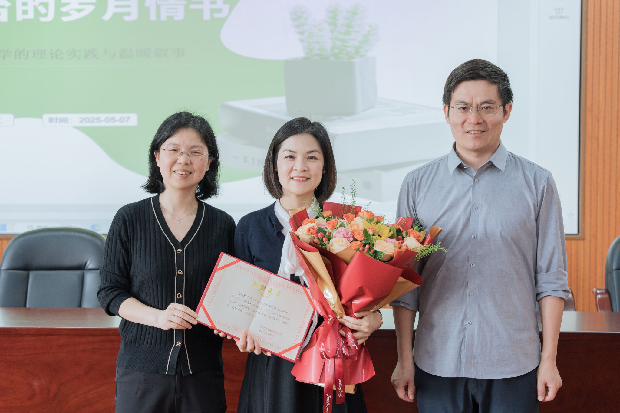 最后,姚佩英老师对讲座进行总结,学生代表向吴老师献花致谢,活动在合影中圆满结束。本次讲座不仅为师范生提供了宝贵的教学指导,更传递了一名教育工作者对职业的深情与智慧。