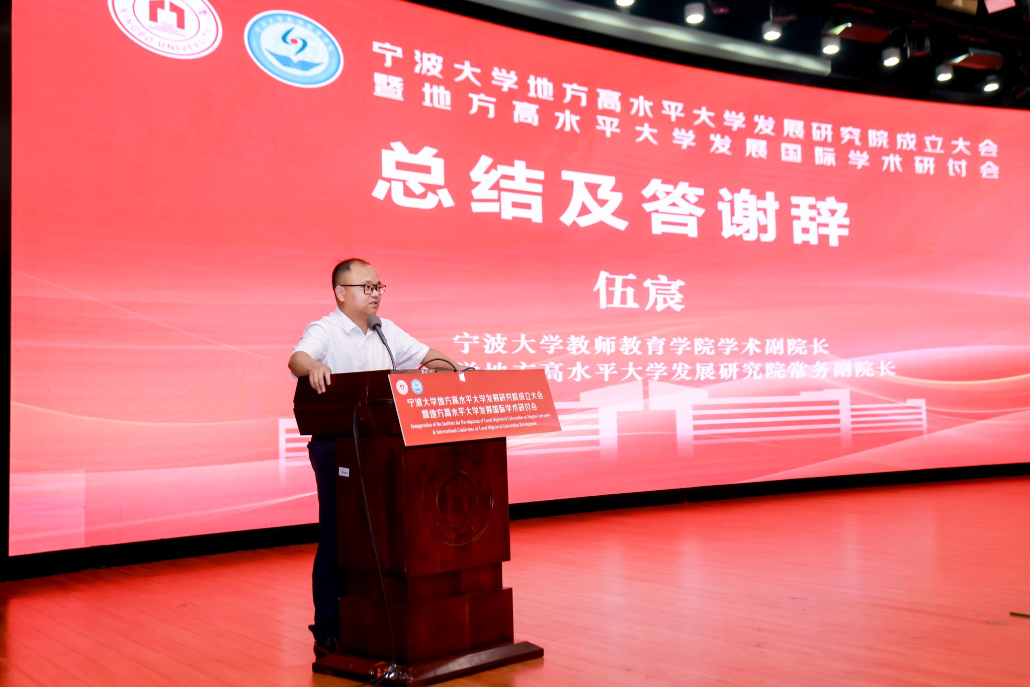 地方高水平大学发展研究院常务副院长伍宸教授做大会总结及答谢词。伍宸教授在大会总结时认为,本次高端的国际学术论坛具有如下几个特点:一是各报告紧扣会议主题。无论是上午主旨报告还是下午各分论坛报告,所有报告者均围绕地方高水平大学发展以及大学与城市等展开。二是报告学术含金量十足。地方高水平大学作为我国高等教育体系的重要组成部分,在高等教育分类发展的时代背景下,蕴含着丰富的学术内涵,各报告均对此从不同学术视角做了深入的探讨,可以说为本领域的学术研究奠定了坚实的学理基础。三是交流非常充分和谐。来自海内外60余名学术专家以及100余名校内外师生共聚一堂,大家积极展开研讨和交流,与会者均有较好的参与感和学术获得感。