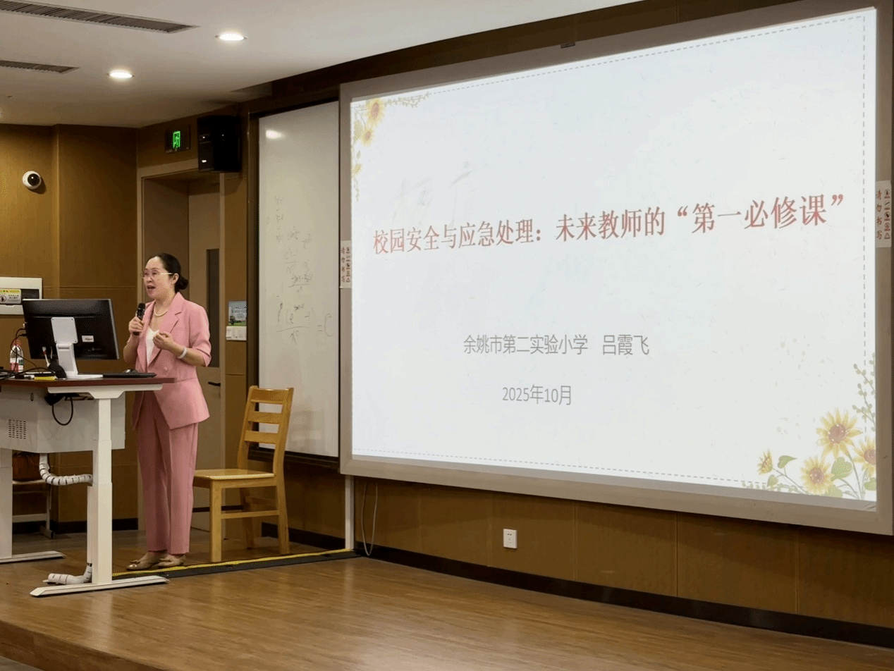 北校区2-207成功举行,特邀余姚市第二实验小学正高级教师吕霞飞,作题为《校园安全与应急处理:未来教师的“第一必修课”》专题讲座。