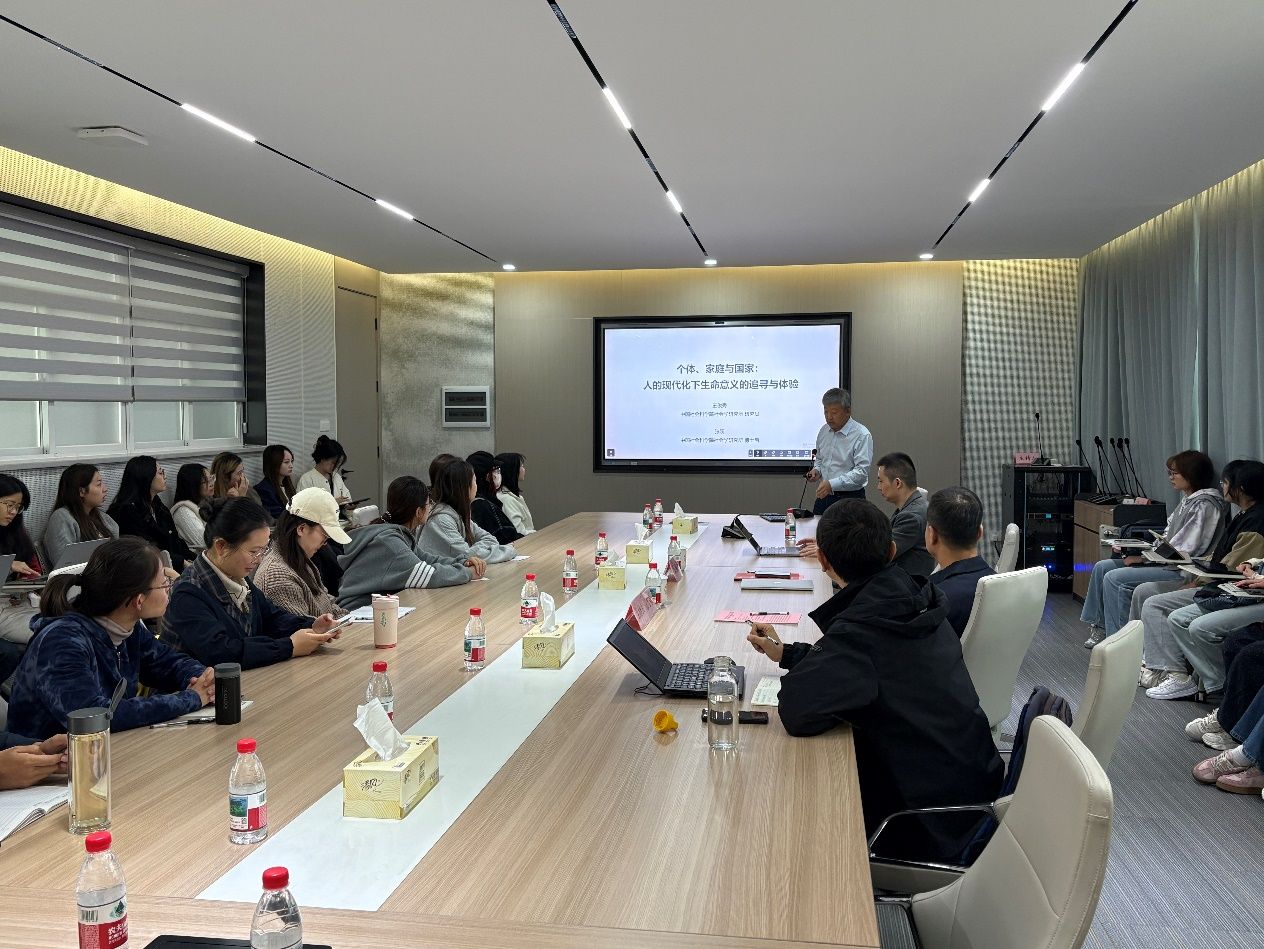承办的人文社会科学名家讲坛第502讲在西区教育楼413会议室顺利举行。本次讲坛聚焦"个体、家庭与国家:人的现代化下生命意义的追寻与体验"主题,特别邀请中国社会科学院社会学研究所社会心理学研究中心主任、研究员王俊秀作专题报告。讲坛由成人论坛