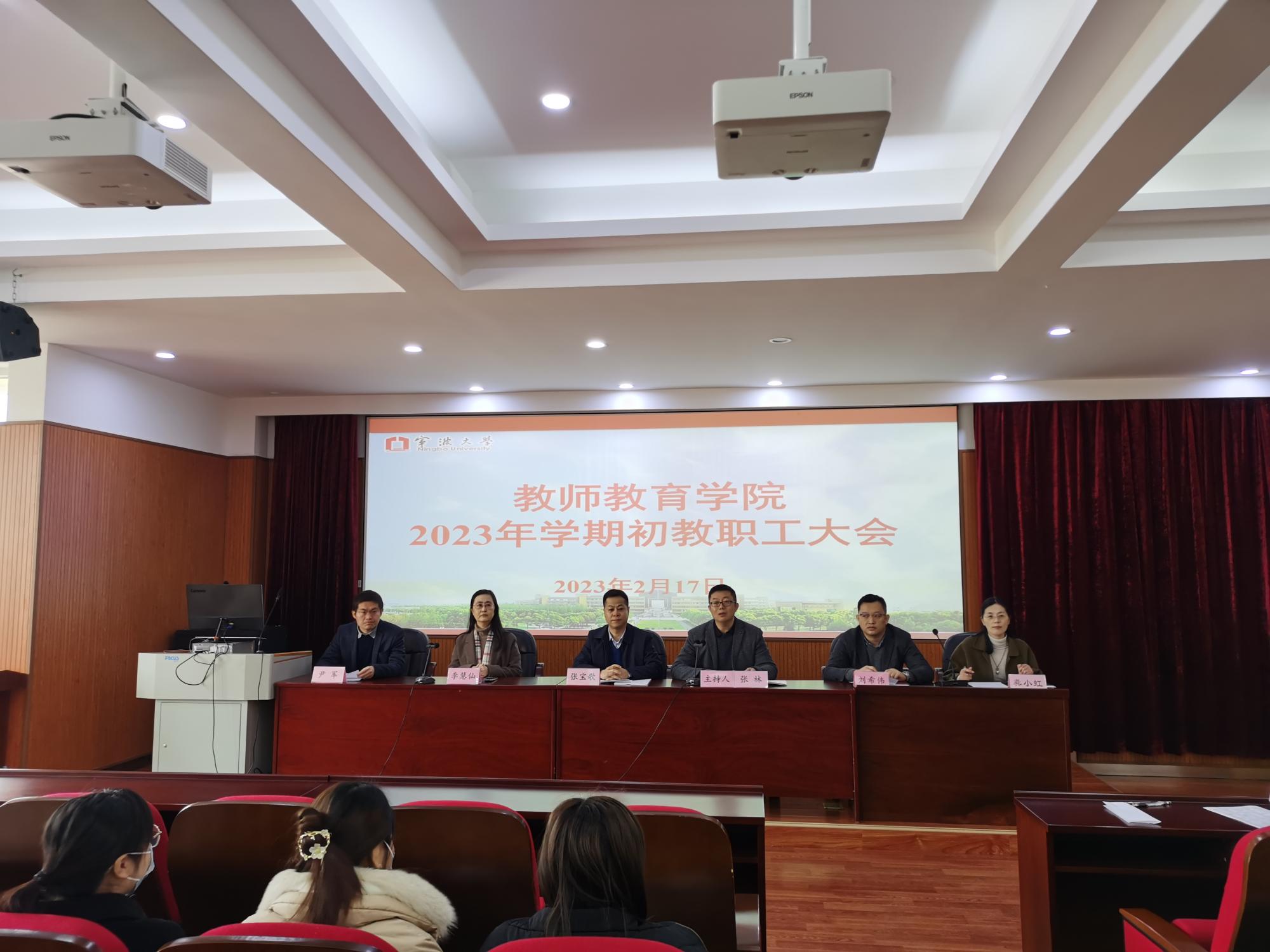 召开了新学期第一次全体教职工大会。学院党委书记张林主持会议,院长张宝歌、副院长李慧仙、刘希伟、尹军、副书记龚小虹以及全体教职工参加了会议。