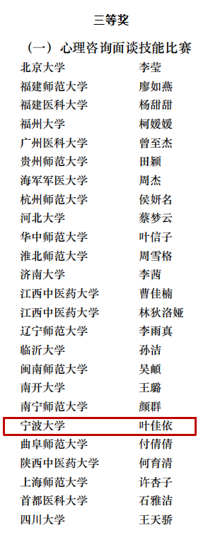 2022级应用心理专业硕士研究生叶佳依在程亚华老师的指导下,获应用心理咨询面谈技能比赛三等奖;参赛作品名称《“拒绝”是她的保护色》。