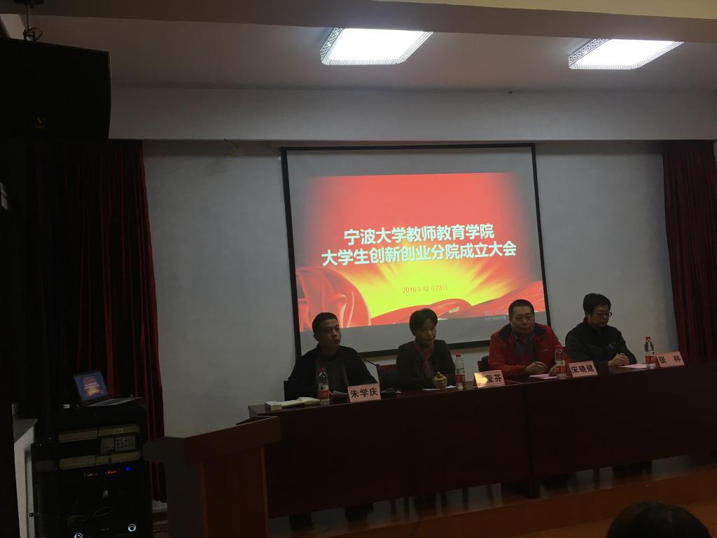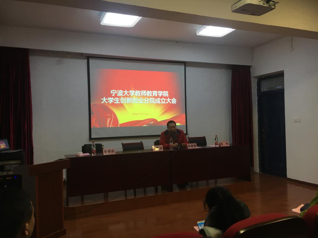大学生创新创业分院成立大会在宁大西校区博观楼301隆重举行。学院党委书记方莹芬、副院长张林、党委副书记朱学庆出席成立大会,大会还邀请到宁波新桥创客创业投资管理有限公司总经理宋晓健作创客专题报告,学工办辅导员、教师代表、分院学员代表等参加了此次成立大会。大会由朱学庆主持。