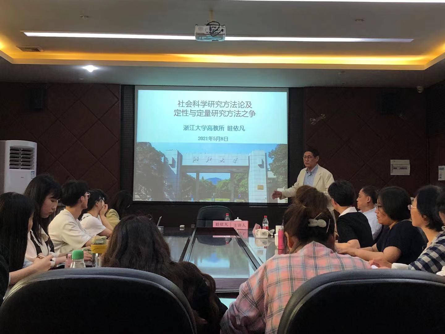 “人文社会科学名家讲坛”第270讲报告会于2021年5月8日下午在西校区实验楼307教室成功开展。浙江大学高教所眭依凡教授做了以“社会科学研究方法论及定性定量研究方法之争”为主题的报告,贺国庆院长作为主持及点评人出席了本次报告会。此外,陶志琼、康绍芳等8位老师参加了本次学术报告会。本次学术活动的主要参加者有成人论坛