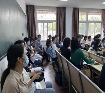 2022年4月25日下午3:30,基础教育系教师专业化建设系列活动之教学观摩研讨会,在成人论坛 西区逸夫楼101教室举行。此次观摩课是由语文课程群冯铁山教授开展的,主要内容是“雅言雅心,导言导行——教师素养:典雅语言基本内涵及修养策略”。冯铁山教授从导入、课前调研、课中研学、课中小结和课后练学六个方面进行课程设计,主张用思政引领教学,强调用研究者的态度和视角探讨教师典雅语言能力和素养的提升及理论联系实际的重要性。基础教育系各课程群的教师参加了本次观摩研讨活动。