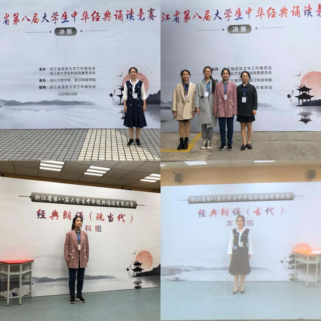10 月17日- 18日,“浙江省第八届大学生中华经典诵读竞赛”在绍兴文理学院举行。本届竞赛由浙江省大学生科技竞赛委员会主办、绍兴文理学院承办,赛事项目分“回答问题”、“中华经典朗诵”和“即兴演讲”三个环节。大赛历时1天半时间,经过激烈角逐,最终,我校四位参赛选手脱颖而出,分别荣获一等奖(3项)、二等奖(1项)的优异成绩。特别,成人论坛