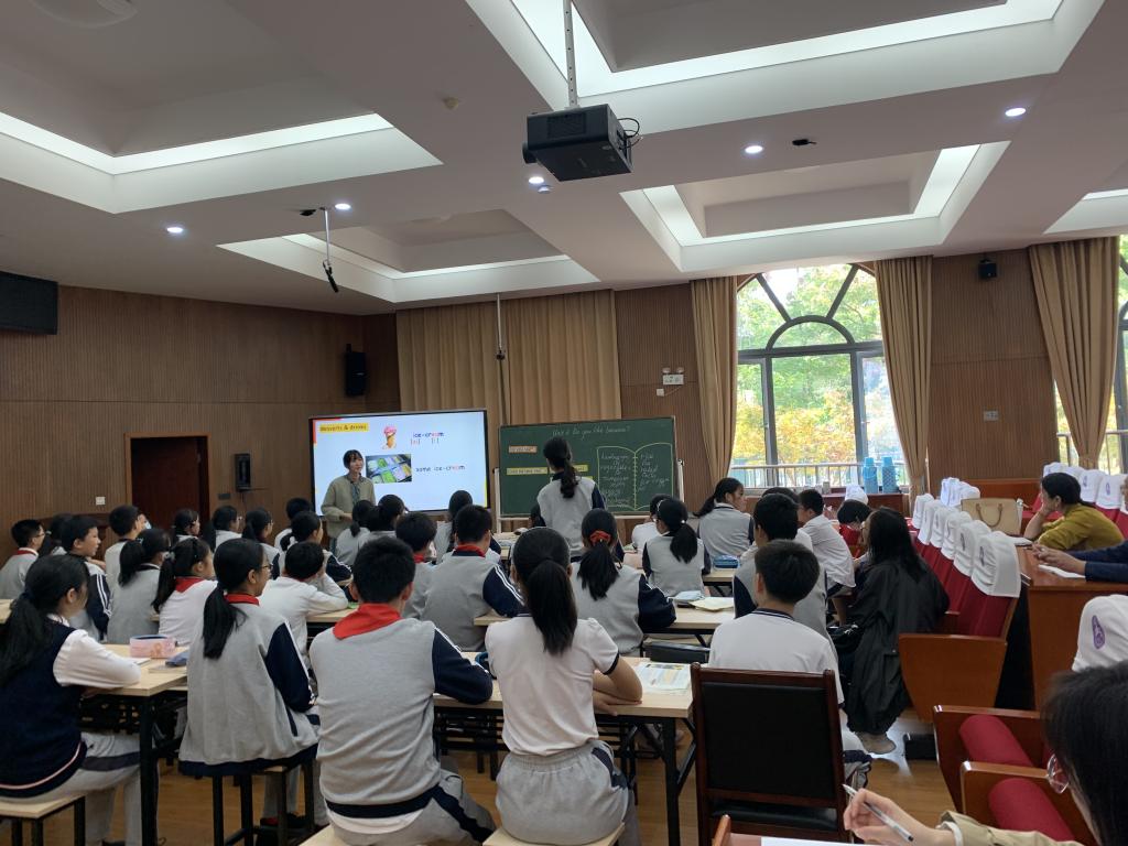1028日下午,英语教育系与宁波市海曙外国语学校举行了一场联合教研活动。活动在海外小学部报告厅进行,主题为“英语教学的中小衔接”。海曙外国语学校陈琪莉老师和吴丹妮老师先后执教了一节七年级的英语听说课和一节六年级的英语读写课。两位老师均采用“音---文”四位一体的教学模式,利用情景与活动,让英语学习与生活实际相结合;同时,两位老师还关注了听力与阅读的微技巧训练。课后,初中部和小学部英语教研组两位组长陆老师和曹老师分别对陈、吴两位老师的课进行了精彩的点评。