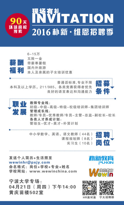 【就业】朴新宁波-维恩教育招聘
