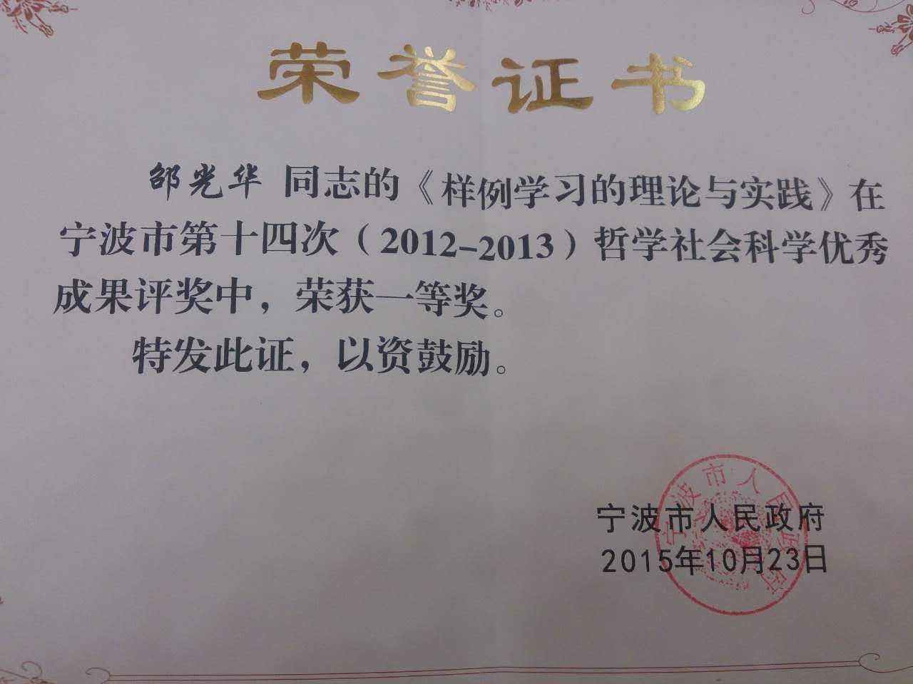 大会上,对宁波市第十四次哲学社会科学优秀成果奖进行了颁奖,成人论坛 邵光华副院长《样例学习的理论与实践》喜获宁波市第十四次哲学社会科学优秀成果奖一等奖。