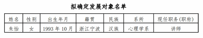 根据学校党委规定,现将拟确定为发展对象人选的1名同志予以公示,公开征求意见。现就有关事项通告如下: