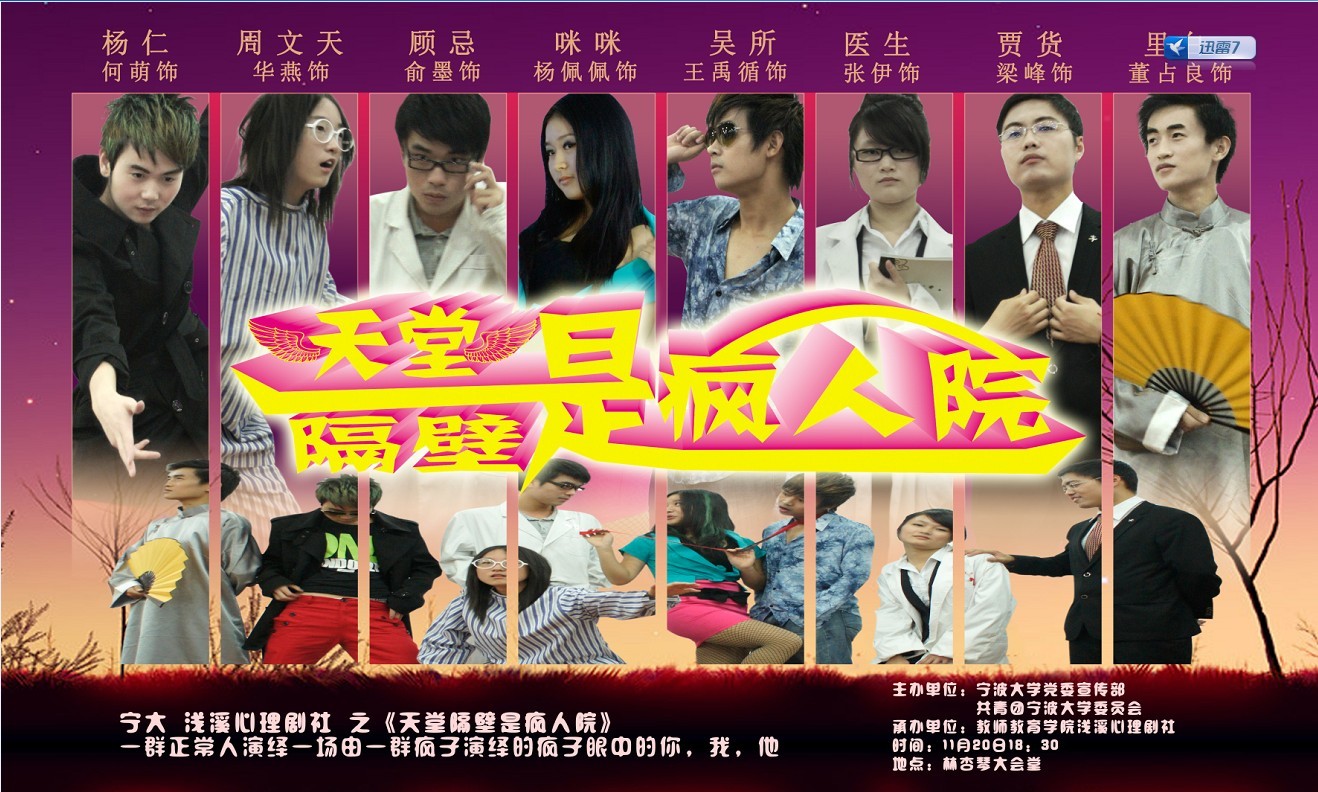 浅溪心理剧社《天堂隔壁是疯人院》专场演出将于11月20日(本周日)晚18:30在成人论坛