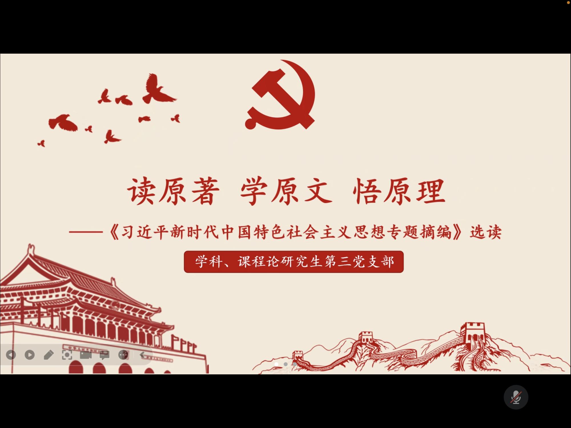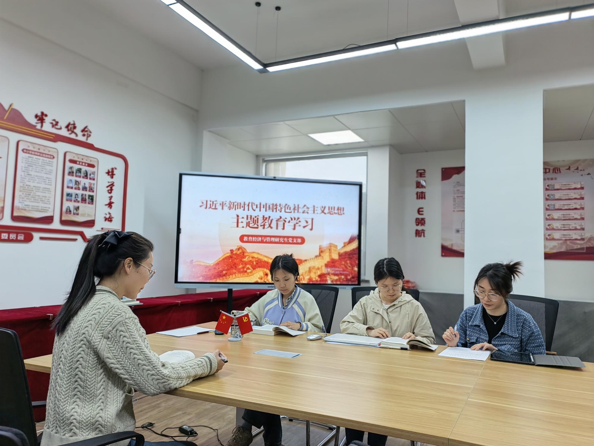 5月10日下午,教育经济与管理研究生党支部召开党员大会,集中学习《习近平新时代中国特色社会主义思想专题摘编》中第一章的内容——“新时代中国特色社会主义思想实现了马克思主义中国化时代化新的飞跃”。党支部书记王玉姣老师主持会议并进行领学,支部全体党员参加了此次会议。会上,王玉姣老师指出,只有中国化时代化的马克思主义才是我们立党立国、兴党兴国的根本保障,并强调要深刻把握这一重要思想的精神实质、核心要义和实践要求。
