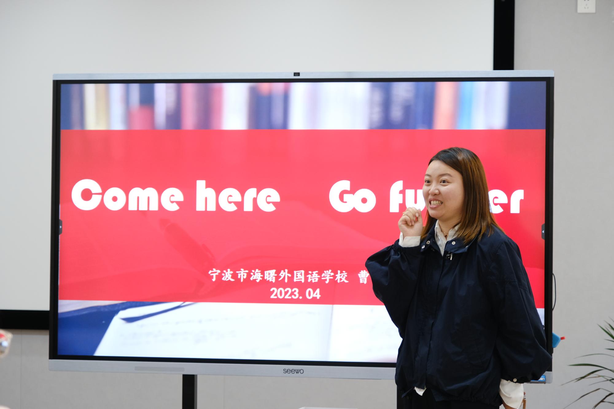 然后,由宁大学长,浙江省教坛新秀曹岑老师为大家带来了第二部分讲座。曹老师从宁大学习经历开始,慢慢讲述到教学工作经历,再到遇到邹艳老师后,对英语教学的认知的提升。讲座期间,曹老师数度热泪盈眶,发自真心的感悟点燃了同学们对于未来英语教学生涯的期盼。