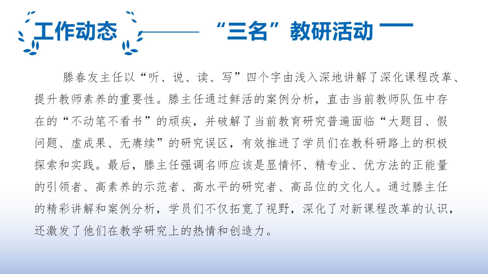 成人论坛 基础教育“三名工程”研究中心简报——“新课程新教学新评价”专题培训
